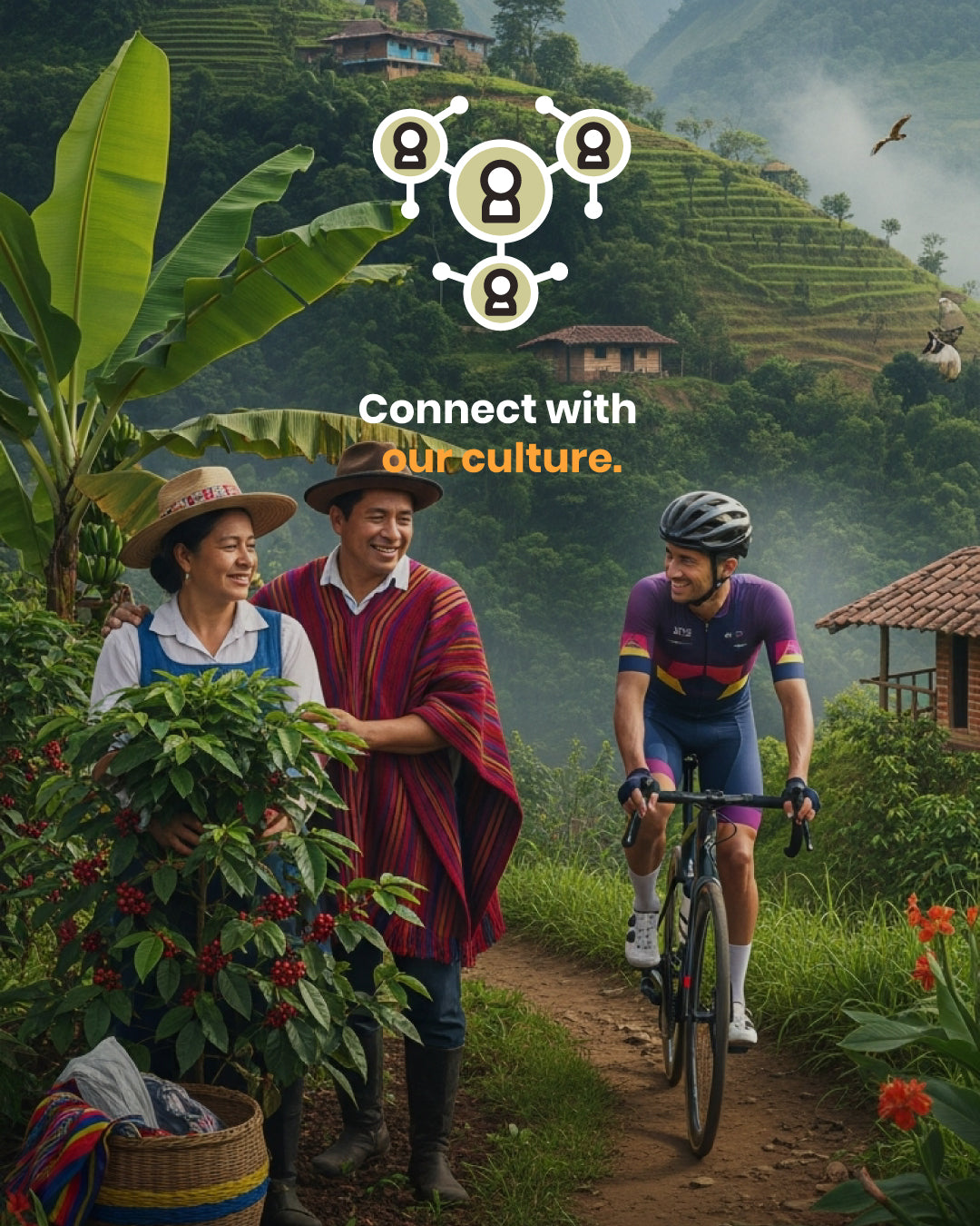 A través de experiencias cuidadosamente seleccionadas, conectamos nuestros paisajes, nuestra gente y nuestras historias, ofreciendo un viaje donde cada pedalada y cada taza celebran la herencia de Colombia.